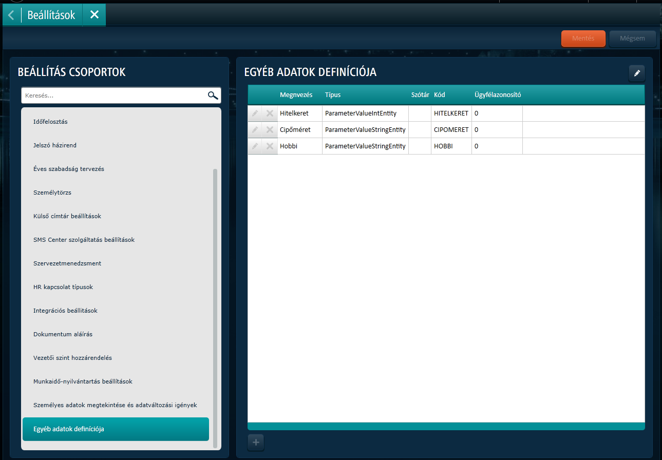 Amennyiben a beírt paraméter értékek megfelelőek, akkor a jobb felső részen található Mentés gombot nyomja meg. A Mégsem gomb megnyomása visszavonja a műveletet.