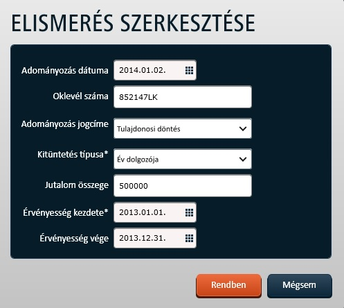 végezheti el az Elismerések adatkörre