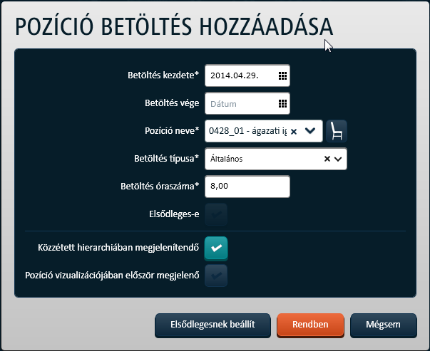 mellett lehet új pozícióbetöltés létrehozni. A kiinduló pozícióbetöltés