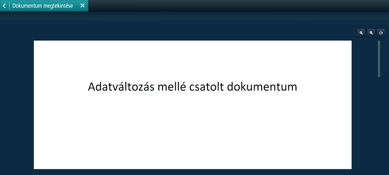 Az Adatváltozási igények képernyőn a dolgozó által leadott adatváltozási igény sorát megnyitva a Megtekintés gomb segítségével megtekinthető a csatolt dokumentum. Például: névváltozás esetén a személyazonosító igazolvány szkennelt példánya.